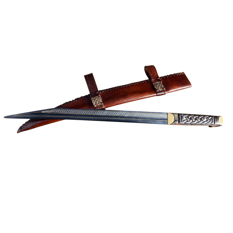 Deluxe Gold-Inlay Seax of Beagnoth with Wooden Wall Mount and Leather Scabbard – Deepeeka Primus